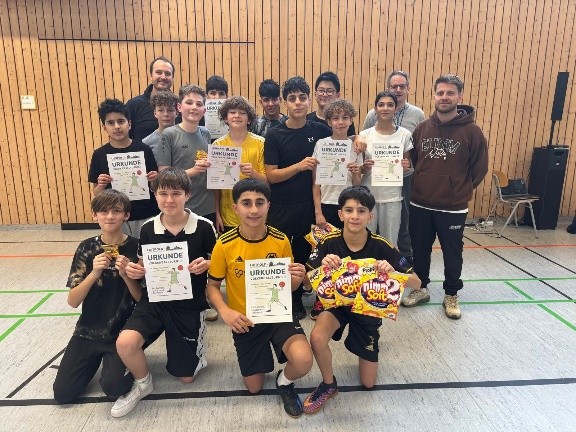 Von 8:15 Uhr bis 10:15 Uhr traten zunächst die Klassen 5a, 5b, 5c sowie 6a, 6b und 6c gegeneinander an. In fairen Spielen mit vielen schönen Treffern zeigten die Schülerinnen und Schüler großen Einsatz und Teamgeist. Die anschließende Siegerehrung um 10:20 Uhr bildete einen würdevollen Abschluss dieses Turnierabschnitts.